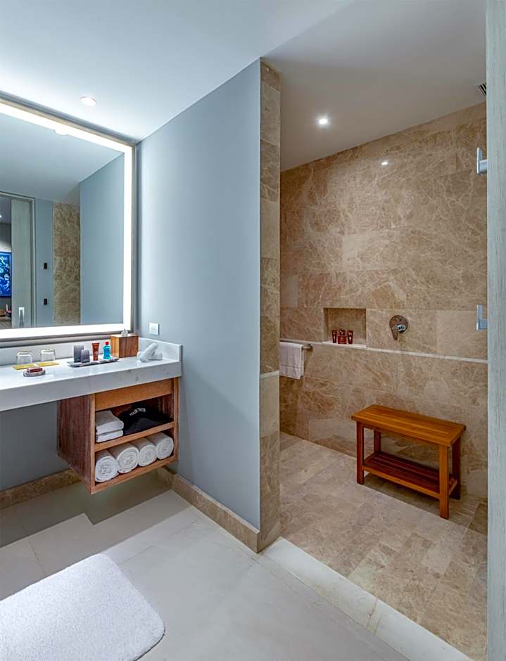 The spacious air-conditioned suite provides a flat-screen TV, a seating area, a safe deposit box, heating as well as sea views. The unit offers 1 bed.